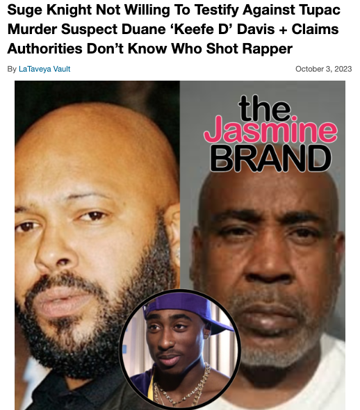 A court judge reportedly ruled that 60-year-old Keefe D, real name Duane Davis, can be released from prison and given an ankle monitor for house arrest should he be able to post his $750,000 bail. As we previously reported, Davis is currently being detained on charges related to the death of rap star Tupac Shakur. If you’re unfamiliar with the situation, the Grammy nominated “Keep Ya Head Up” artist was gunned down in a drive by shooting back in 1996, that also injured Death Row Records co-founder Suge Knight. The music exec, who is currently jailed on a separate murder charge, has made it clear he has no plans to be involved in the case against Davis.