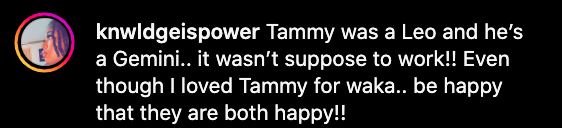 Social media users flooded the rapper’s comments section recently asking “Where’s Tammy” after he went public with his new girlfriend.