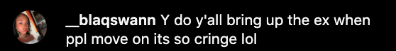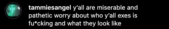 “y’all are miserable and pathetic worry about who y’all exes is fu*cking and what they look like”