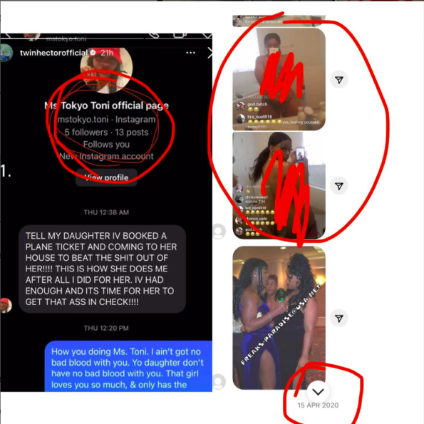 Tokyo Toni then shared her own receipts on Instagram, claiming the pics Twin Hector received were screenshots from a nude live stream she did four years ago.