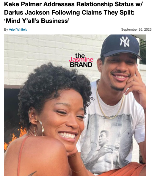 Original Story: (Dec. 1, 2023): Actress Keke Palmer and her former boo Darius Jackson are moving to handle their legal situation privately.