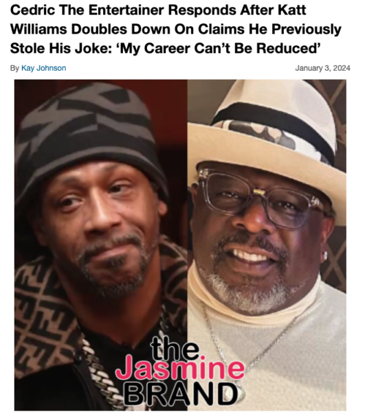 In case you’re unfamiliar with the situation, Williams had his guns blazing while speaking about other entertainers during the aforementioned conversation with Sharpe. The jokester accused both Steve Harvey and Cedric the Entertainer of being idea thieves, claiming the former ripped off the idea for his sitcom “The Steve Harvey Show” from comedian Mark Curry’s series “Hangin’ with Mr. Cooper”, while alleging the latter stole of his personal best jokes. Both have gone on to directly and indirectly deny there is any truth to the allegations.