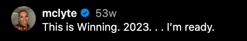 “This is Winning. 2023. . . I’m ready.”