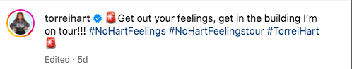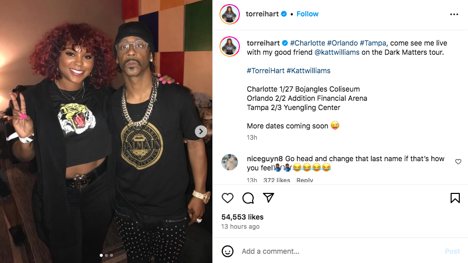 After letting fans know that they can catch her on Katt Williams’ “The Dark Matter Tour” or during her own “No Hart Feelings Tour,” which kicks off in February, Torrei added,