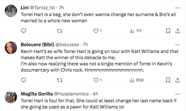 Although Williams and Hart’s rivalry prompted the majority of the opinions that ensued after Torrei’s tour announcement, others also mentioned her notorious beef with her ex-husband, Kevin.