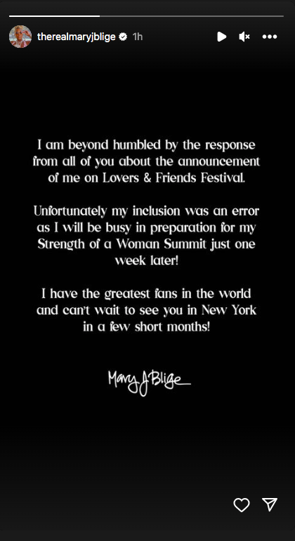 If you haven’t heard, the Lovers & Friends Festival recently released its official lineup for 2024, and fans were expecting to see legendary songstress Mary J. Blige on the main stage.