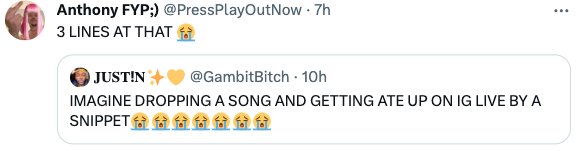 “All these lil rap n*ggas so fraud/ Xanax be they hardest bars/ These n*ggas hate on BBL’s but be walking around with the same scars”