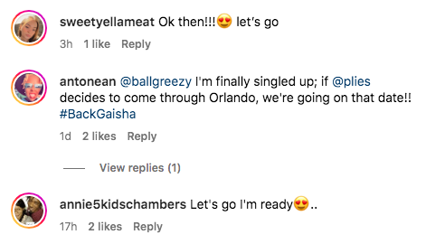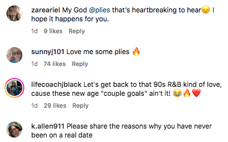 Of course, following his heartfelt post, ladies wasted no time running to the comments and presenting themselves as a potential candidate for a date with Plies.