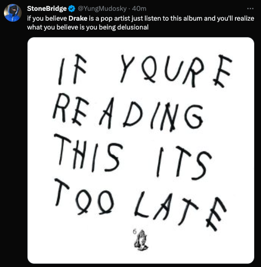 “if you believe Drake is a pop artist just listen to this album and you’ll realize what you believe is you being delusional”
