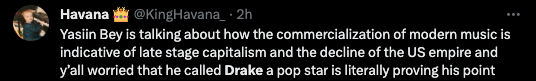 “Drake is pop to me…in the sense like, if I was in Target in Houston and I heard a Drake song… it feels like a lot of his music is compatible with shopping….Or shopping with an edge in certain instances… It’s likable.”
