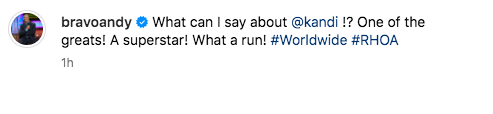 “What can I say about @kandi !? One of the greats! A superstar! What a run! #Worldwide #RHOA”