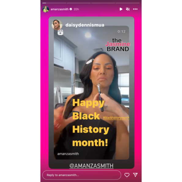 On Wednesday, Amanza Smith posted a video on Instagram of her mouthing the lyrics to a song, including the word “n—a” over and over again while smiling and laughing. She also reposted it on her Instastory with a graphic that read, “Happy Black History month!”