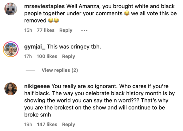 Reality star Amanza Smith is doubling down. The Selling Sunset cast member responded to fans who criticized her for repeatedly saying the n-word in a song while celebrating Black History Month.