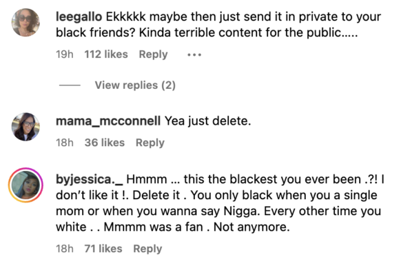 “I thought it was hilarious, I still think it’s hilarious. And I love that I can say n—a. It’s in all the songs that I listen to and, yeah, I’m Black, I’m white, I’m Asian – all the things. And I don’t have a problem with my post. Sorry that some of you do but, it is what it is.”