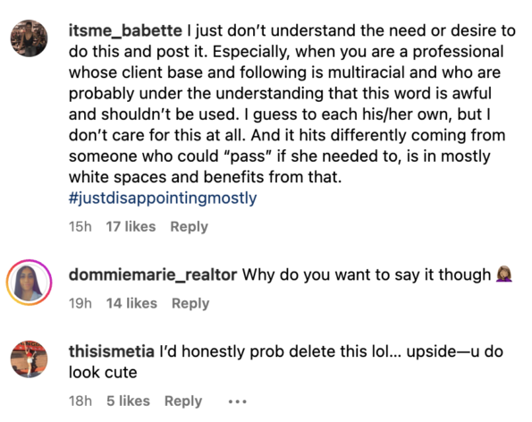 Critics flocked to the comment section of her original post to sound off and called out the reality star for using the controversial word.