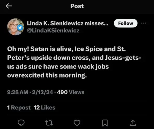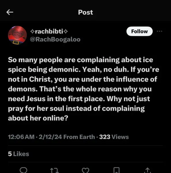 “Ice Spice went to Catholic school and, in an interview, says she prays every day. I find it hard to believe she’s demonic.”