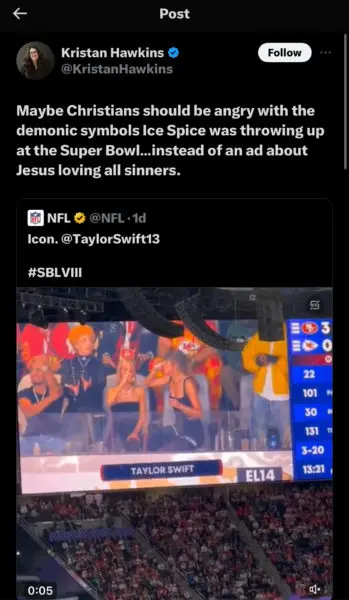 One “X” user accused Ice Spice of “summoning” a Kansas City Chiefs win during the 2024 Super Bowl,