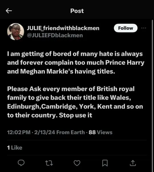 On the other hand, another user on “X” defended Meghan Markle and Prince Harry,