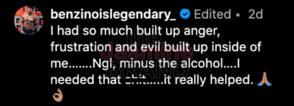 “I had so much built up anger, frustration and evil built up inside of me…….Ngl, minus the alcohol….I needed that sh*t…..it really helped.”