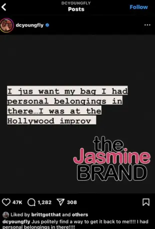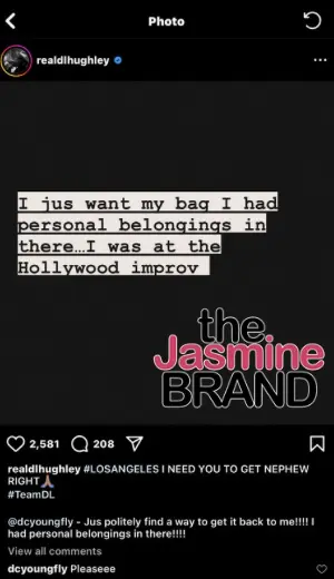 To help bring awareness to the multi-faceted star’s request to return his bookbag, actor and comedian D.L. Hughley reposted D.C. Young Fly’s Instagram post on his page.