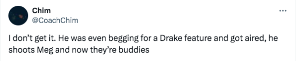 “I don’t get it. He was even begging for a Drake feature and got aired, he shoots Meg and now they’re buddies”