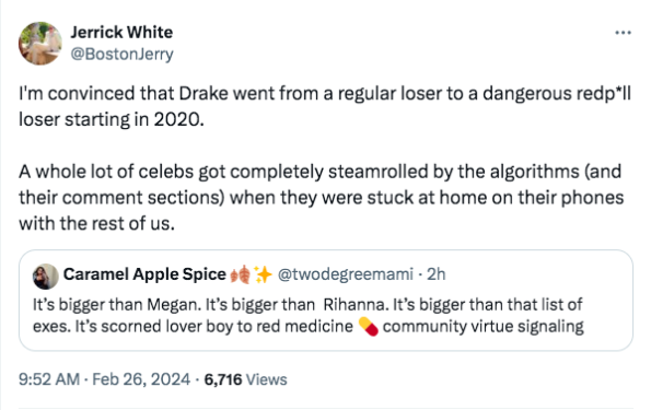Others pointed out that Drake has seemingly taken multiple shots at Megan Thee Stallion unprovoked, with one X user expressing,