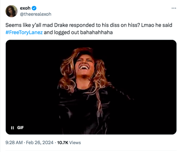 This isn’t the first time Drake has shown support for the fellow Canadian rapper since his 10-year sentence started. However, many have taken to X (formerly Twitter) to question the reason behind Drake’s recent post. One person noted that Drake didn’t seemingly become friends with Tory until after the “Broke In A Minute” artist was at odds with Megan Thee Stallion. They wrote,