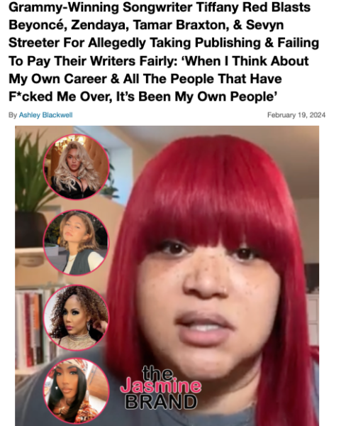 In case you’re unfamiliar, Tiffany is not only a songwriter but also an activist fighting on behalf of other writers in the industry for fair pay. As we’ve previously reported, she’s called out several big-name celebrities such as Beyonce and Tamar Braxton, accusing them and a few others of taking writing credits without justly compensating the songwriters involved.