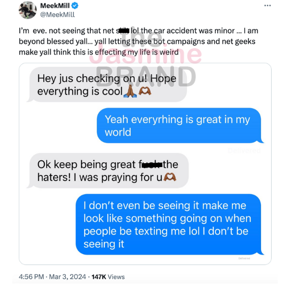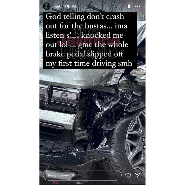 Meek Mill Says He’s ‘So Blessed’ & Not Worried About His Haters After Being In A Car Crash: ‘The Whole Brake Pedal Slipped Off’