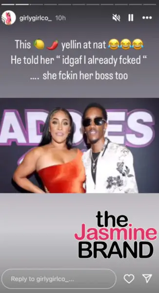 At the end of the clip, he allegedly stated, “I don’t give a f*ck, I already f*cked,” which seemingly implied he and Nunn had a sexual encounter.