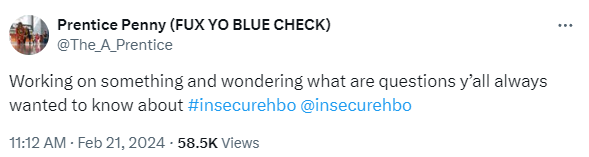 “Working on something and wondering what are questions y’all always wanted to know about #insecurehbo @insecurehbo?”