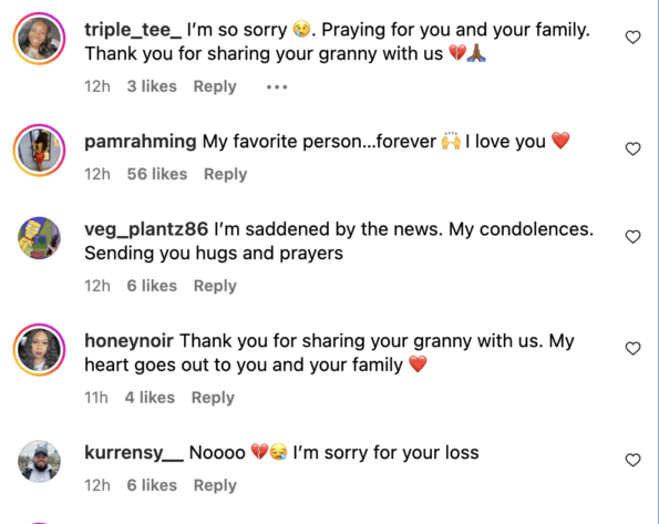 “My internet granny. ???? Sending so much love to your family!”