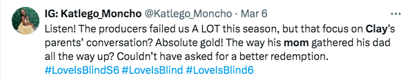 I can’t say I’m surprised, bc AD ignored all the red flags, and Clay been trash since the pods if you ask me ??#LoveIsBlind #LoveIsBlind6 pic.twitter.com/2wR6Iqww6k