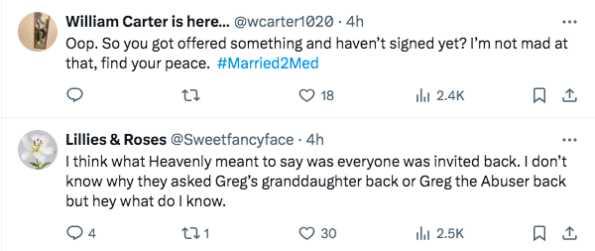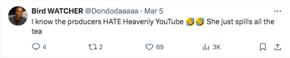 “I know the producers HATE Heavenly YouTube [laughing emojis] She just spills all the tea”