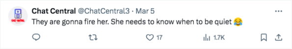 “They are gonna fire her. She needs to know when to be quiet [laughing emoji]”