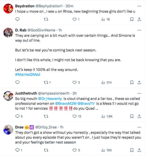 Someone even questioned why Quad Webb would agree to return, seemingly given how she was made to be the villain during the first installment of the reunion. As previously reported, following its premiere, Quad Webb slammed producers for purportedly allowing her co-star Dr. Simone Whitmore to bring up the death of her young niece amid their argument. At the time, she shared on X,