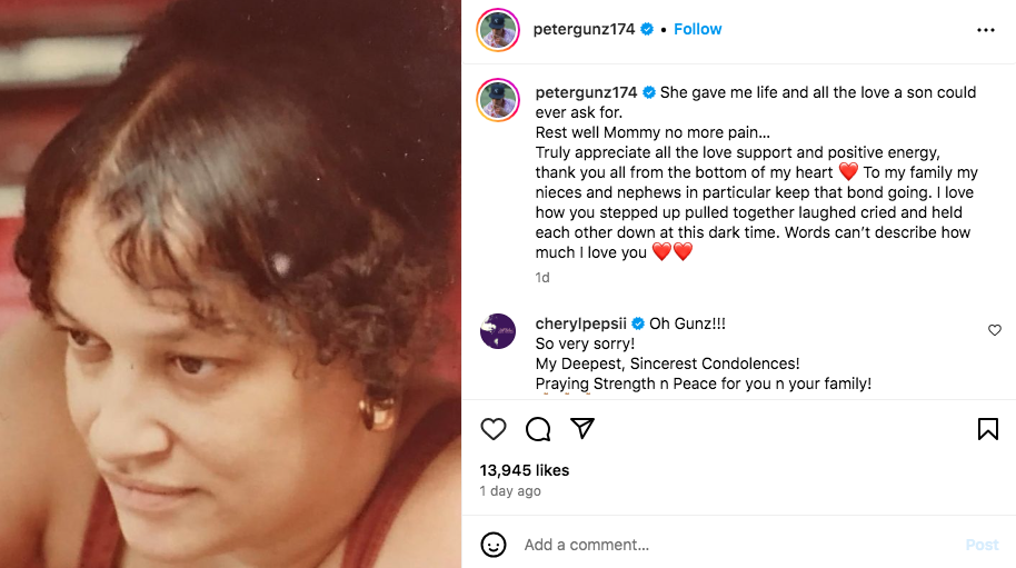 On Wednesday (March 7) former Love & Hip Hop: New York star Peter Gunz took to his Instagram to share that his mother had passed away.
