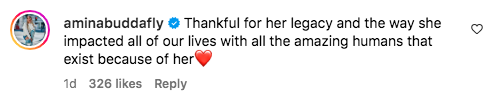 “Thankful for her legacy and the way she impacted all of our lives with all the amazing humans that exist because of her.”