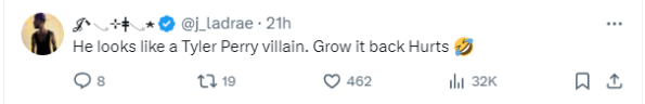 “He looks like a Tyler Perry villain. Grow it back Hurts”