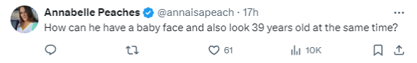 “How can he have a baby face and also look 39 years old at the same time?”