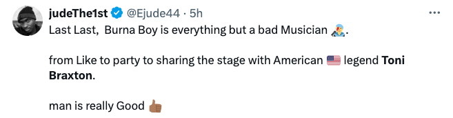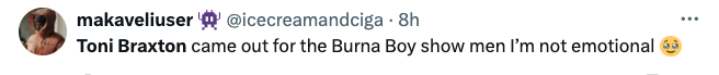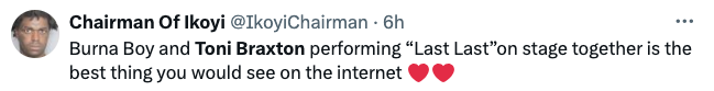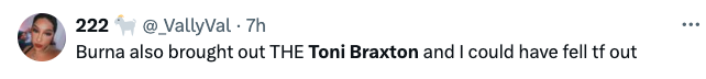 Additionally, the song remains a beloved record among Burna fans. So it was no shock that many of took to social media expressing their exhilaration and excitement when they witnessed Braxton, 56, hit the stage during his recent performance of the song.