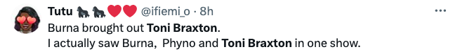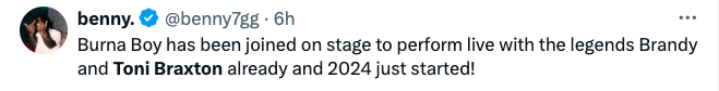 Would you have reacted the same at seeing Burna Boy and Toni Braxton in a concert together? Let us know in the comments below!