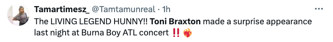 Toni Braxton Trends As Fans React To Burna Boy Bringing Her On Stage For A Surprise Performance: ‘I Could Have Fell TF Out’