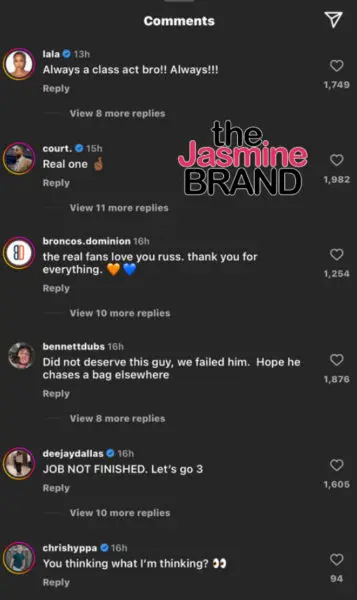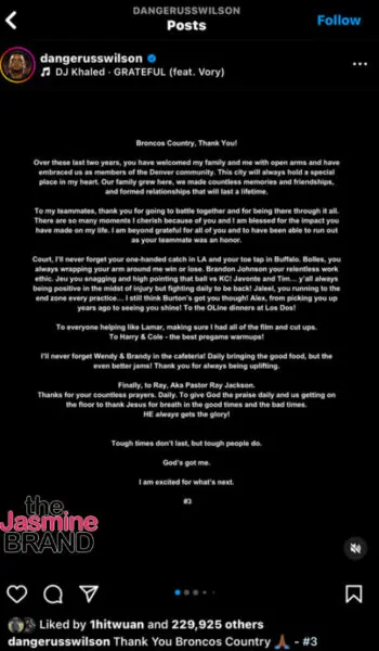 InRussell Wilson’s Instagram post on Monday (March 4), he shared a lengthy statement thanking the city of Denver, his now-former teammates, and the Broncos’ employees. The NFL star also said that he’s excited for what’s next. However, he did not mention the Broncos’ general manager, George Paton, or head coach, Sean Payton.