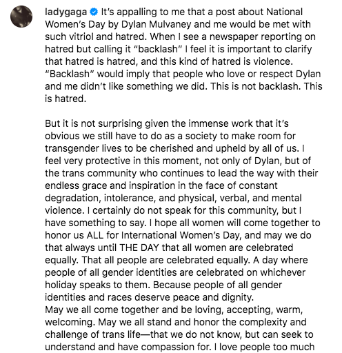 Lady Gaga is proudly standing up for the trans community.