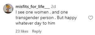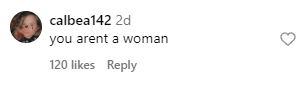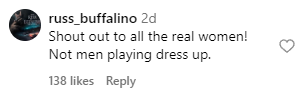 “Shout out to all the real women! Not men playing dress up.”