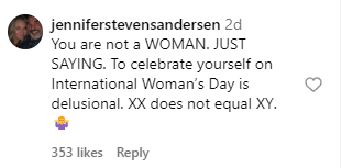 “Why’s Dylan representing. He’s “NOT” a woman. What an insult to us “REAL” woman. Quit invading our territory!”