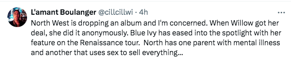 Many users felt it could serve as a bad influence on other children, while some mentioned comparisons between North and Jay-Z and Beyoncé’s oldest daughter, Blue Ivy. (Blue Ivy has also been making moves in the entertainment industry, specifically with her Grammy-winning participation in Beyoncé, WizKid, and SAINt JHN’s “BROWN SKIN GIRL.”)