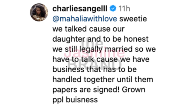 “sweetie we talked cause our daughter and to be honest we still legally married so we have to talk cause we have business that has to be handled together until them papers are signed! Grown ppl buisness”