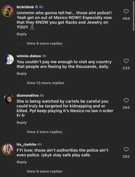 Fans, including sports journalist Jemele Hill, reacted to the situation on Instagram, claiming that the authorities Red was talking about weren’t police but likely a Mexican cartel.